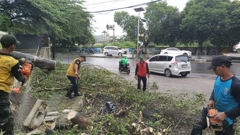 Pohon tumbang juga terjadi di Kelurahan Bhakti Jaya Kecamatan Sukmajaya, dan Kelurahan Pengasinan Kecamatan Sawangan Tumbang.