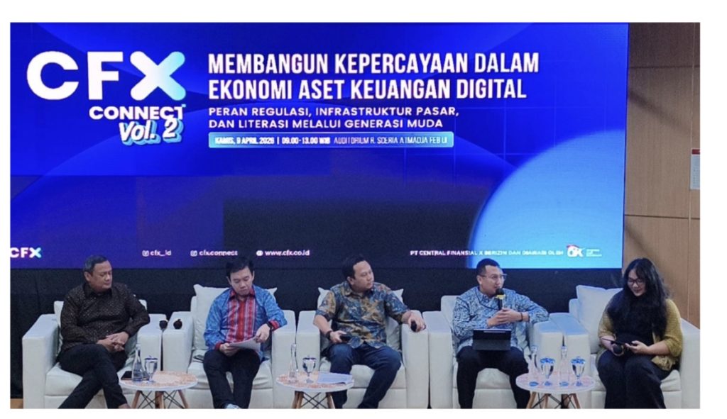 DEPOK- PT Central Finansial X (CFX) menggelar forum diskusi bertajuk CFX Connect Vol.2 di Auditorium R. Soeria Atmadja, Fakultas Ekonomi dan Bisnis Universitas Indonesia (FEB UI), Kamis (9/4/2026). Kegiatan ini mengangkat tema “Membangun Kepercayaan dalam Ekonomi Aset Keuangan Digital” dengan menyoroti peran regulasi, infrastruktur pasar, serta literasi generasi muda.