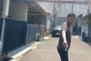 DEPOK24JAM,- Sebuah video yang memperlihatkan aksi koboi seorang pria yang menodongkan senjata yang diduga senjata..