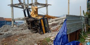 Crane Proyek Tower di Depok Jatuh, Rumah Warga dan Warung Tertimpa
